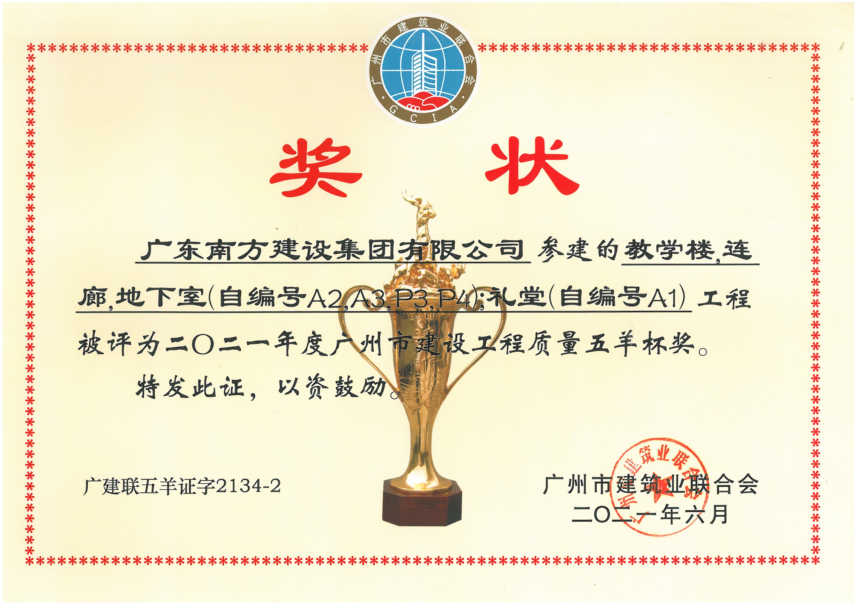 2021廣州市建設(shè)工程質(zhì)量五羊杯獎(jiǎng)