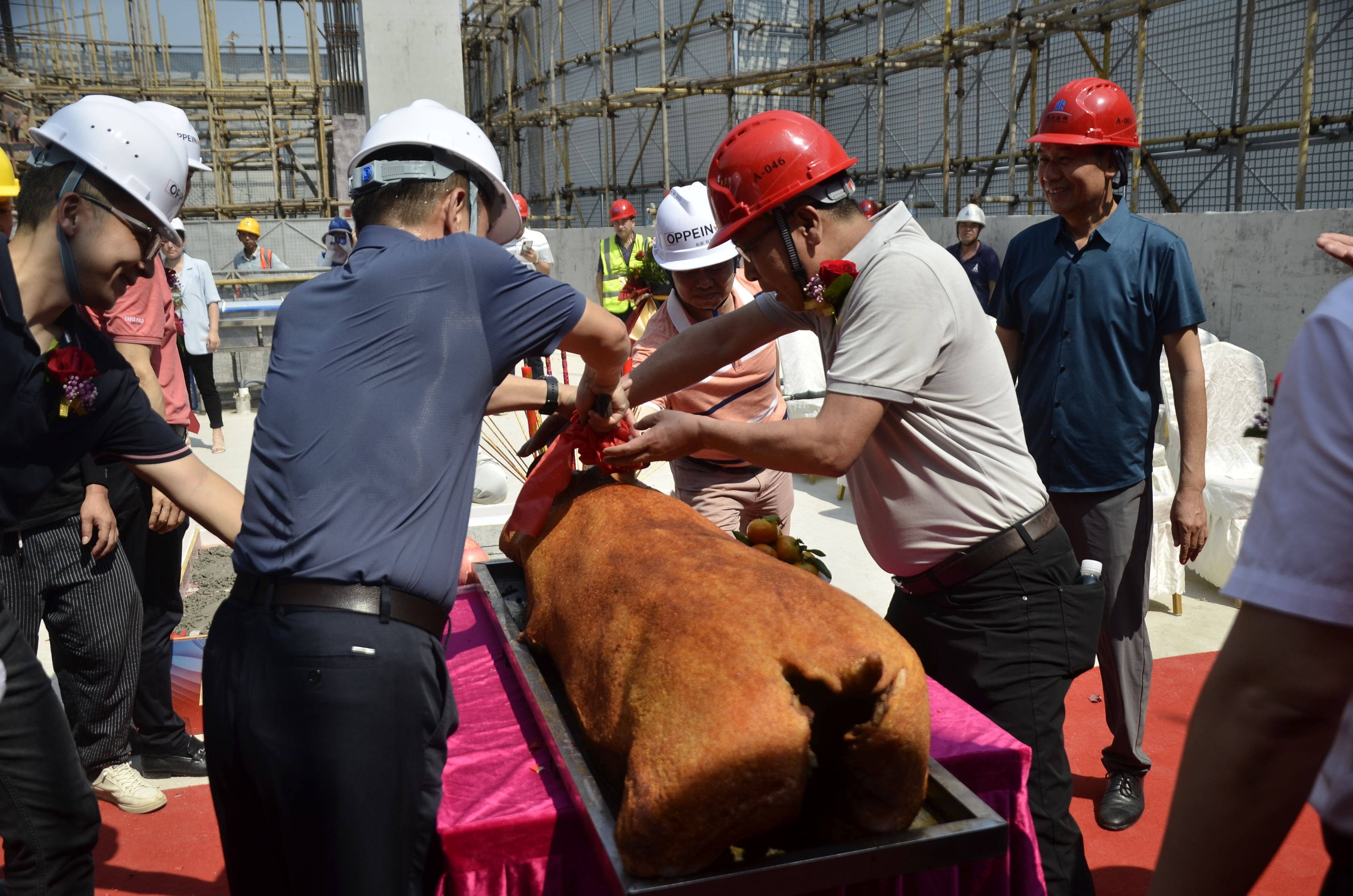 在全員見證下,出席的嘉賓們一同為項(xiàng)目封頂澆筑最后一方混凝土,承載滿滿祝福與期望。