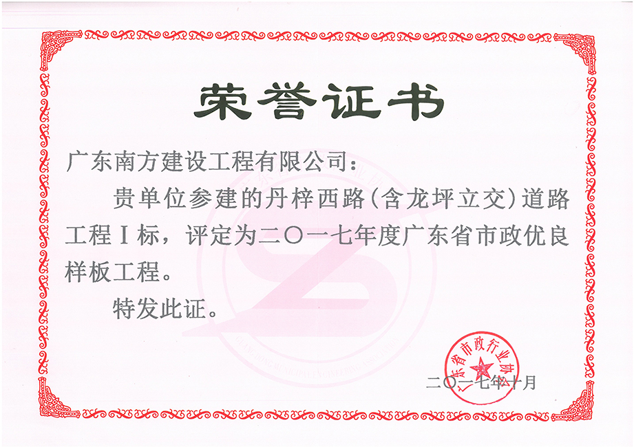 • 南方-丹梓西路(含龍坪立交)道路工程I標(biāo)-廣東省市政優(yōu)良樣板工程