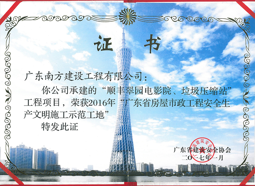• 順豐翠園電影院、垃圾壓縮站-廣東房屋市政工程安全生產(chǎn)文明施工示范工地