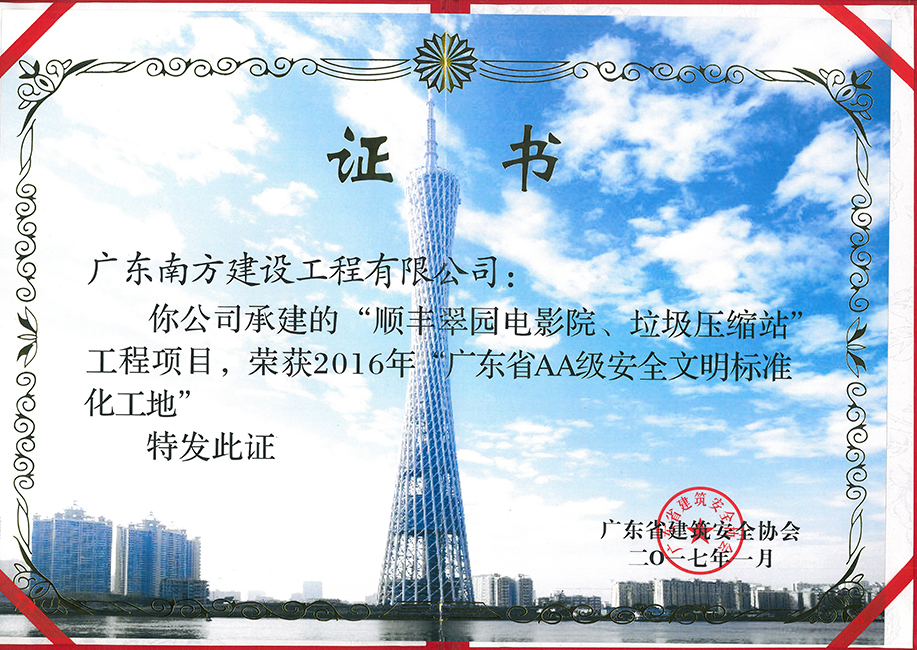 • 順豐翠園電影院、垃圾壓縮站-廣東省AA級(jí)安全文明標(biāo)準(zhǔn)化工地