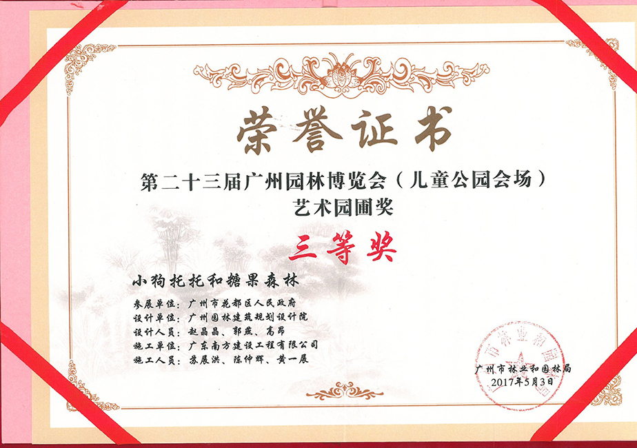 • 第二十三屆廣州園林博覽會(huì)(兒童公園會(huì)場(chǎng))藝術(shù)園圃獎(jiǎng)-三等獎(jiǎng)