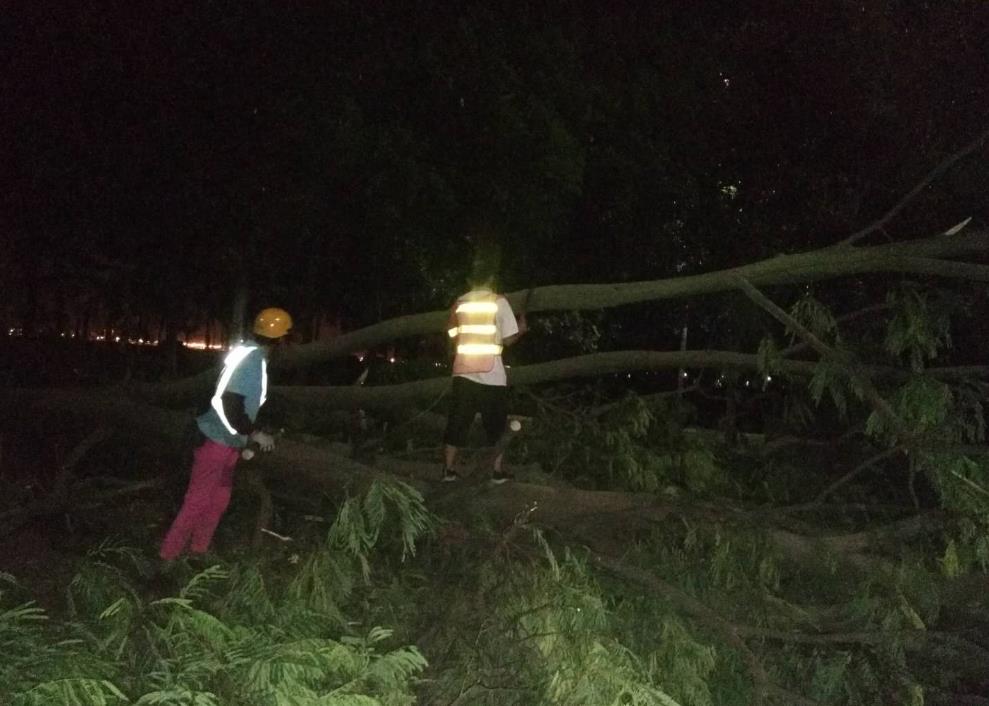 南沙區(qū)風(fēng)力大,受損嚴(yán)重,大量樹木被攔腰折斷、倒伏,導(dǎo)致道路交通阻塞。搶險人員連續(xù)多日加班,修剪倒樹斷枝,加快排除高速公路兩側(cè)的積水,全力搶修受損基礎(chǔ)設(shè)施,第一時間恢復(fù)了主要道路的交通。
